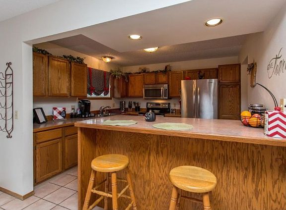 Welcome home! Don't miss this spotless home with plenty of space to spread out and enjoy. Fantastic flooring throughout with newer carpet and laminate floors! The open kitchen, dining area and living room make a fantastic everyday living space. Huge deck off the back with Eastern exposure. The large fenced yard also features an enlarged patio with pergola, perfect for afternoon barbecues and entertaining. The first floor features three bedrooms, including a master suite. Another full bath is also found on the first floor. In the basement there is a spacious living area, with wet bar and sleek entertainment built-ins. great for a play room or theater area. HUGE heated two car attached garage with plenty of space for a workshop and additional storage!