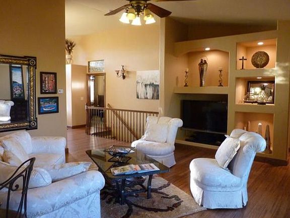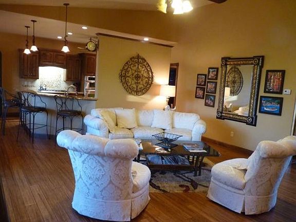 Custom built by GEIER HOMES, you'll see the unique features of this Home instantly! Gourmet Kitchen with upgraded appliances including microwave/convection oven, 36' gas cooktop with pop-up vent, Granite Counters, Maple Cabinets and breakfast bar. Living room features built-in entertainment center plus walk out to maintenance free covered 22 x 15 patio deck. You'll Love the master suite featuring His & Hers Walk-In Closets, whirlpool tub, and separate shower. Second bedroom/office, 3/4 bath, and laundry complete this level. Downstairs you'll find 2 large bedrooms, full bath, and great Family Room with beautiful tiled gas fireplace. Plenty of Storage in the utility/furnace room. SPECIALS BALANCE IS LESS THAN $10,000! Andersen Windows, custom built Boll Cabinets, fully landscaped with sprinklers. You Won't be Disappointed! Not too big. Not too small. This house is JUST RIGHT!