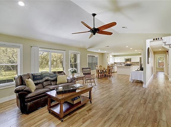 Want to live at the end of a cul-de-sac with an acre of country living amidst all the conveniences of the city AND without an HOA to dictate how to live? If so, this is the perfect home for you! This Country West home has over 40 live & blackjack oak trees in the fenced back yard with a 40-amp RV hookup which could also be used for a workshop. It's practically in the center of Georgetown without the city taxes! Recently renovated, an ideal home to relax or entertain and enjoy nature! The kitchen, living & bedrooms have gorgeous views of the fenced back yard. The master bath has dual sinks, a jacuzzi tub, walk in closet with window seat. The roof, windows, dishwasher, stove, microwave & refrigerator were replaced in 2016. A wine fridge was added as well as 4 overhead fans, one of which, per manufacturer, can move 8,000 cubic feet of air per minute. HVAC was rebuilt in 2017. Canned LED lighting. The 2-car garage has a securable doggy door, so pets can enjoy the spacious back yard.