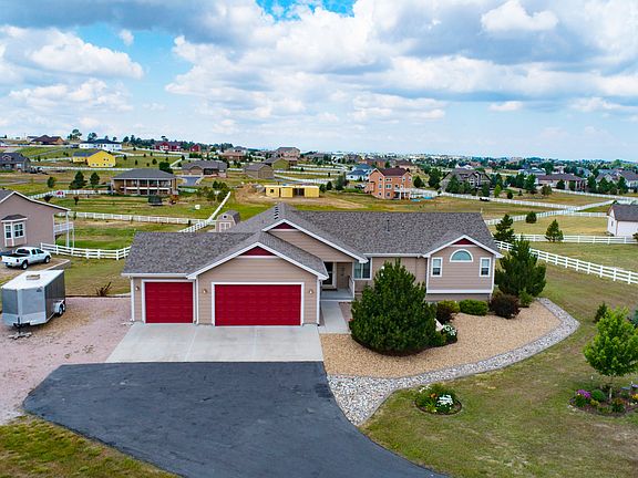 Welcome to Colorado country living at its finest! Gorgeous Deer Creek Farm home set on 1.50 acres with beautiful sweeping views on all sides. This impeccably maintained ranch style home boasts pride of ownership throughout. Upon entry of the home you are greeted by vaulted ceilings, hardwood flooring, rounded corners, and tons of natural light streaming in. You will find plenty of space to entertain in the large family room that opens to the kitchen. The cozy fireplace is perfect for cold winter nights. The kitchen offers newer stainless steel appliances, 42 inch cabinets, and a spacious eating space. Out the sliding glass doors you will find the perfect outdoor living space, a huge 16 x 24 covered deck that is truly impressive. Watch the sun go down, enjoy the beauty of falling snow, or capture a thunderstorm roll over the rocky mountains all from the comfort of your deck.