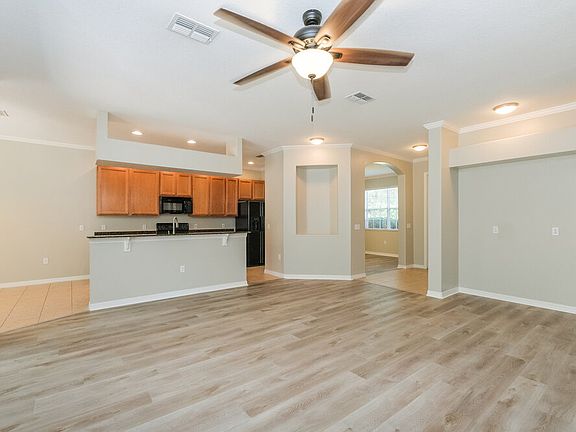 Please note, our homes are available on a first-come, first-serve basis and are not reserved until the lease is signed by all applicants and security deposits are collected. This home features Progress Smart Home - Progress Residential's smart home app, which allows you to control the home securely from any of your devices. Want to tour on your own? Click the "Self Tour" button on this home's RentProgress. Move right in to this spacious four-bedroom, two-bathroom rental home in sunny Spring Hill, Florida. The attached three-car garage has plenty of space for cars and household storage. The home's open floor plan combines the living room, dining room, and kitchen into one impressively big space. You will feel like a chef in the large kitchen, where glossy countertops give the kitchen a modern look. The windows in the dining room bring in lots of natural light. The primary bedroom is a treat, with the attached bathroom and sliding glass doors leading to a covered porch. The fenced-in yard adds privacy and security outside. Call today for your showing!