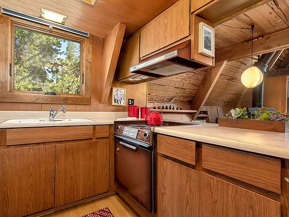 Your dream mountain cabin in Serene Lakes. Fabulous proximity to the swimming lake & just one block from National Forest trails. Original A-frame cabin with solid bones. The cabin features a comfortable open plan living area with pecky cedar paneling, wood stove, vaulted ceilings & tall windows. Enjoy the large sunny deck! Upgrades include new roof & dual pane windows. Convenient covered entry way and storage areas. Hiking, biking, lakes & world class ski-ing are minutes from your door. 20 mins to Truckee. 2019-09-06