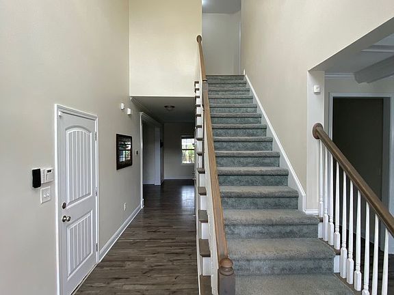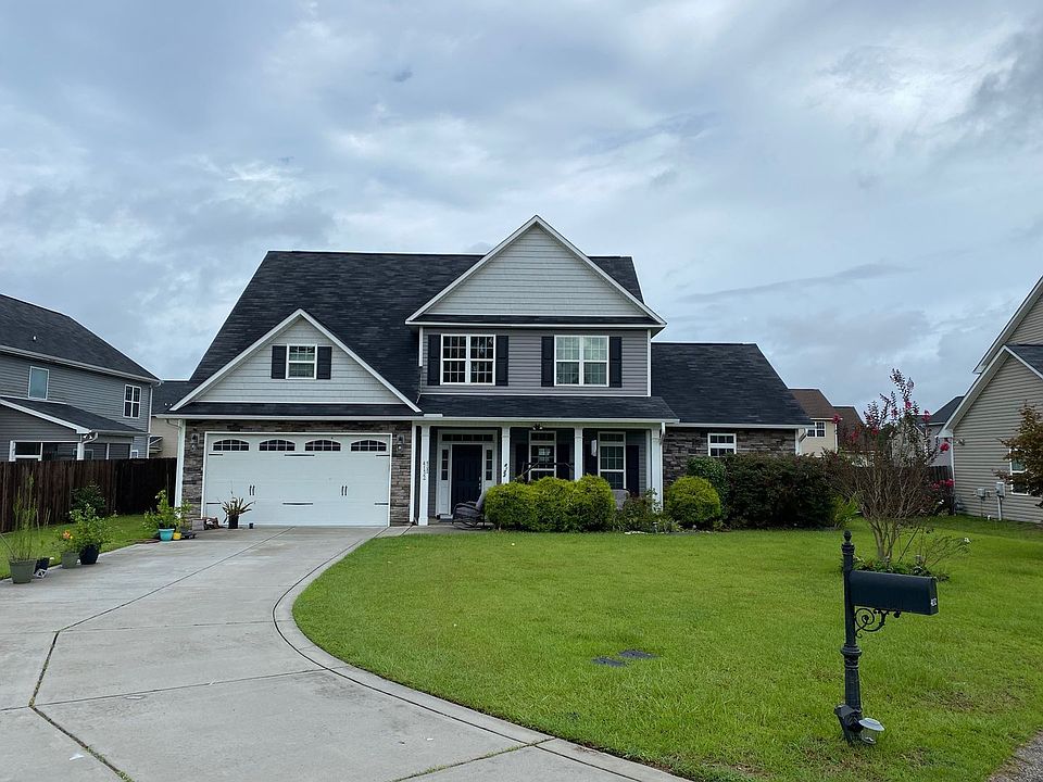 Welcome to the Estates of Camden in Fayetteville, NC! This stunning 4 bedroom, 4.5 bathroom home boasts a double car garage, great room with a gas fireplace, and a spacious kitchen with granite countertops and stainless steel appliances. Enjoy the convenience of ceiling fans throughout, as well as tile and luxury vinyl plank flooring. With two master bedrooms - one upstairs and one downstairs - and a bonus room, there is plenty of space for everyone. Step outside to the covered patio and fenced backyard, perfect for entertaining or relaxing. Located in the sought-after Jack Britt school district, this home also features a formal dining room, eat-in kitchen, and sprinkler system on a well. Don't miss out on this incredible opportunity to make the Estates of Camden your new home!