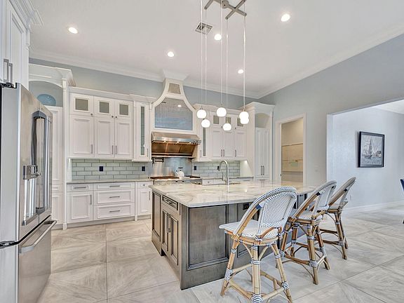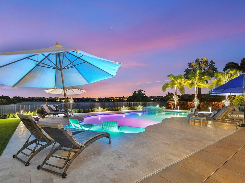 New to market at Wellington's coveted Castellina development, this singular 5 bedroom and 5 full bath customization of the builder's Ritz model home is now available for your consideration. Added to the standard Ritz floor plan is an additional 5th bedroom & 2 full baths. The interior upgrades feature a custom gourmet kitchen with a high-level 6 burner natural gas cook top which includes a griddle, stove, & pot filler. Custom cabinetry is enhanced by stunning quartz countertops with island seating & prep-work area. Elegant 30 by 30-inch tile flooring graces the main living area as an exceptional foundation. Hardwood flooring covers the office/den & new upscale Berber carpet graces the owner suite bedroom floor. A singular home for a wonderful lifestyle. The exterior lifestyle is enhanced by a newly installed custom pool & spa surrounded by both marble pavers and new artificial turf. Added to the exterior lifestyle is a new Tiki Hut & custom outdoor kitchen & grill, all overlooking a stunning lake view & lush custom landscaping, lighting and surround sound. Added features to the home are a full-house natural gas generator, an entertainment music system for interior & exterior enjoyment, 6 wall-mounted televisions & a grand 4-foot extended 3-car garage. Come visit this home for a full appreciation of this one-of-a-kind Wellington FL residence at Castellina.