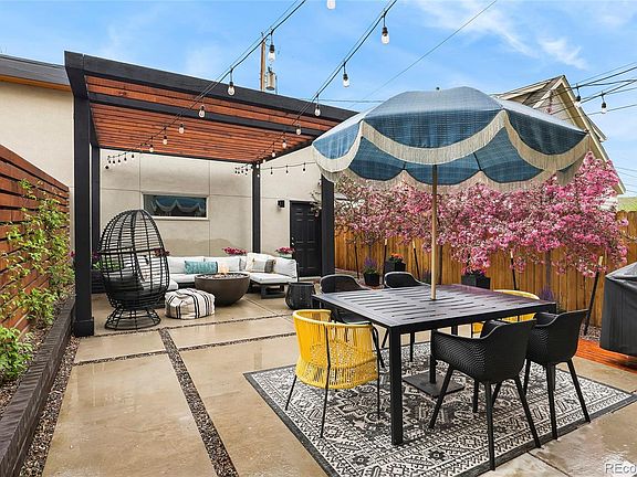 Premier Berkeley Park location, one of the most beautiful tree-lined streets in the neighborhood. Less than a 2 minute stroll to the Shops & Restaurants on Tennyson, and walking distance to so much more. Thrill your guests with a one-of-a-kind outdoor living room. In 2021 the Seller’s gutted the backyard (cash outlay of $45,000), creating one of the best looking, artsy, urban settings you’ll find on a duplex lot. And the backyard faces east, so weekend BBQ’s and socializing around the Eldorado Infinite Fire Bowl will be marvelous as the sun moves west. 2,375 above grade square feet with an additional 925 finished in the basement. 4 bedrooms (3 on second level, one in basement) and 5 bathrooms. The third level currently serves as a home office, and includes a 1/2 bath, wet bar, fireplace and outdoor patio. The handsome Mountain Contemporary exterior changes into a bright and warm interior immediately upon entering the home. The main level was intelligently designed for easy going evenings or entertaining a large group of friends, and double sliders lead into the backyard. The Sellers updated the kitchen and added new carpet throughout in May of 2023. Detached oversized 2-car garage with room for storage.