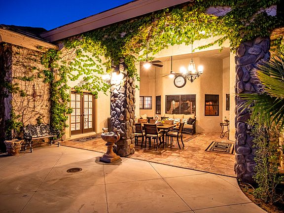 STUNNING ESTATE HOME WITH GUEST QUARTERS/POOL HOUSE on over an Acre in very Desired Custom Neighborhood. You'll be impressed by the Attention to Detail from the moment you enter through the Electric Front Gate. The Circular Drive Surrounds a Massive Fountain. The Manicured front Landscape features lots of Dimension & Color with Mature Trees, Artificial Turf, Walkways. The Architectural Detail includes a Stone Accents & Pillars, a Covered Walkway and Sitting Area & Wood Garage Doors. You enter the Home thru Custom Double Wood Doors. The Entry is Grand with High Ceilings. The Formal Living Room & Dining Rooms have plenty of Windows for picturesque views of the Front and Back. The Heart of the Home is the Large Family Room with White Builtins along the entire wall, Plantation Shutters, New Lush Carpet and lots of Natural Light. And the Family Room is adjacent to the Kitchen, perfect for family living. You'll love the newly Remodeled Dream Kitchen with White Shaker Cabinets with Soft close Drawers, Rich Quartz Countertops, Stainless Appliances including a Trash Compactor and a Warming Drawer. The Master Bedroom is huge with Cozy Fireplace, a Huge Walkin Closet with Builtins and a Slider to the back Patio. The Master Bathroom is Luxurious with lots of Cabinets, Spa Tub and Oversized Shower. It's an incredible home! And there is not only this gorgeous 3089sf home, there is also a 1000sf Detached Guest Home/Quarters (or a Pool House for Entertaining) complete with a Spacious Great Room with a Wetbar, a Bedroom with a Roomy Closet & a Lovely Bathroom complete with an Oversized Custom Tiled Shower (which has never been used). And--an Attached Oversized Two Car Garage. The entire acre is finished & ready for your Family and Friends. A Covered Patio with Ceiling Fans & a TV. A Massive Inground Pool with a Raised Spa with Water Features & a Raised Lounge Area, A BBQ Cabana, Paved RV Parking, a Basketball Court, Lush Landscaping including Palm Trees & much more!