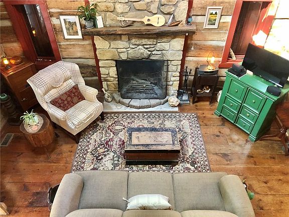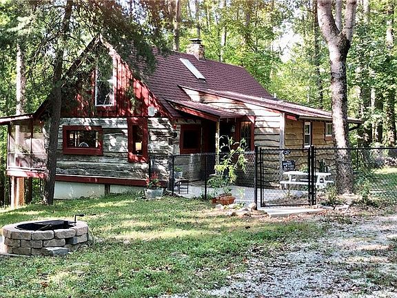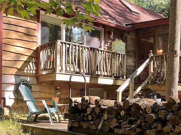 Here's that lil' cabin in the woods you've been looking for! Nestled back on 2.365 acres, it's got it all for the perfect character cabin and just a short walk away from a 6 acre lake. Enjoy a cup of your favorite beverage from your screened in porch, or bask in the sunlight from either deck or concrete pad inside the fenced front yard. SO much character with a built in trundle bed in the loft, bathroom finishes from a dresser and vanity set, leaded glass windows, curled vine handrail, exposed logs, hardwood floors & more! Master has its own entrance to a deck that floods with natural light. Your family room with cathedral ceiling, also doubles as your dining nook complete with schoolhouse dome light. Schedule your showing soon!