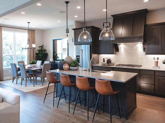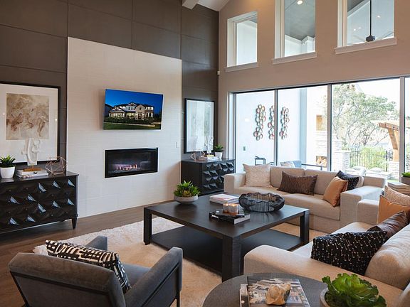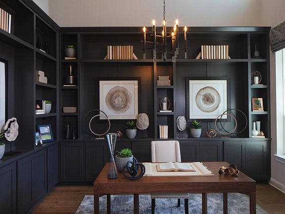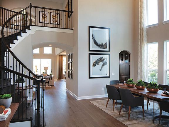 The Artisan Hill Country is a stately model home featuring a covered front porch into an impressive foyer with soaring ceilings and formal dining room. This model home features a secluded office that is ideal for managing family schedules and has front yard views. A spacious great room with fireplace is open to the well-appointed kitchen with a center island, breakfast area, ample cabinet and counter space, and a generous walk-in pantry. The expanded covered patio is perfect for enjoying outdoor time. The primary bedroom suite is enhanced with a tray ceiling, dual walk-in closets, a walk-in linen closet, dual vanities separated by a relaxing tub, and a separate shower. Upstairs you are greeted with a spacious loft area and attached media room, and generously sized secondary bedrooms and two full baths. Completely furnished, this home comes with all the designer-selected furnishings and décor throughout. Disclaimer: Photos are images only and should not be relied upon to confirm applicable features.