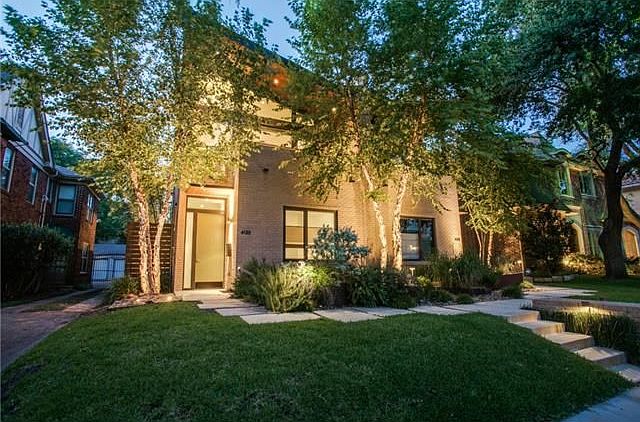 Sophisticated contemporary urban home just 2 blocks from Highland Park. This large 3 bedroom home features unique finishes, such as Black Lagos marble fireplace, bronze mirror walls, concrete floors and walls of glass combined together to create a sumptuous environment. There is a spacious, open kitchen with marble tops, high-end stainless appliances and custom cabinetry overlooking the living, dining and den. Two second floor master suites, each with outdoor terraces, have dramatic corner glass windows and vaulted ceilings. Other amenities: covered outdoor living area with water wall and fire pit, integrated sound system throughout, media room (including all equipment), and zero-scape exterior making this a true 'lock N leave' urban home.