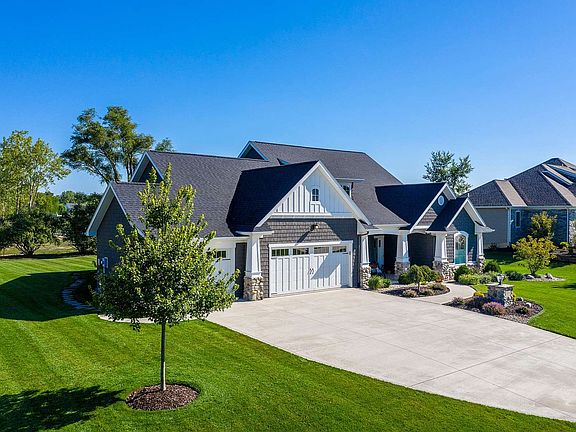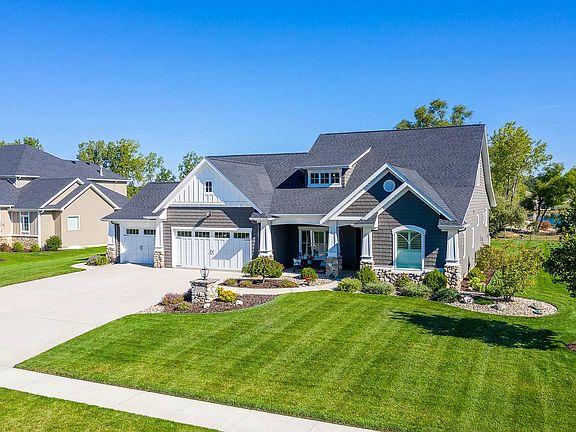 You're going to fall in love with this newer craftsman style 2 story home that offers 4BRs, 3.5BA, great open concept layout, and almost 2,900 sq ft of living space inside. The décor is stunning and looks like in came straight from a magazine. The beautifully manicured front lawn welcomes you right up to the covered front porch. Upon entry you will fall in love with the desirable engineered hardwood floors and gorgeous plantation shutters . Straight ahead you will find yourself in the enormous great room! Natural light pours through the wall of windows brightening up the room. A cozy fireplace is surrounded by built-in cabinetry and shelving giving it a nice touch. Entertaining is a breeze as the great room is open to the extravagant kitchen and dining room. This island kitchen boasts granite countertops and sleek white cabinetry with an abundance of storage. It has wall mounted oven and a gas cooktop which the chef of the family will appreciate. The master bedroom is conveniently housed on the main floor and features a private ensuite with a double vanity, tiled walk-in shower, and a large walk-in closet. There is a 2nd bedroom also on main level with an adjacent full bath. The 2nd level offer 2 more BRs, full bath and loft. Don't miss the beautiful trim package with white painted ship lap in kitchen, dining, and great rooms. Off the living room is a huge covered back patio with an outdoor fireplace to set the mood while taking in the spectacular water views. Lets not forget the lawn irrigation system and 3-car garage with epoxy finish. All this just blocks away from I-69 & Parkview Hospital.