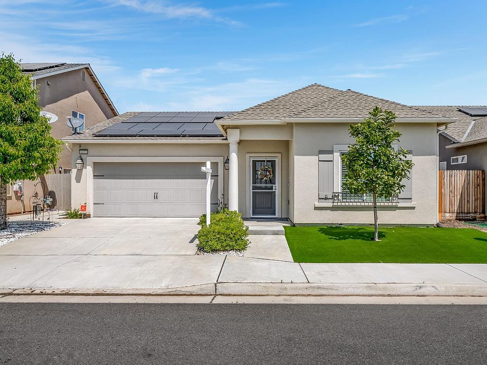 Loma Vista living in this adorable 3 bed / 2 bath, single story home, built in 2018.Beautiful decorated and lovingly maintained, with 2 bedrooms and a full bath located at the front of the house, the main bedroom is privately located at the rear of the home. Built by Lennar, upgrades include tile flooring that looks like wood planking and a decorator backsplash. Solar is leased at $120 a month. (Death on the property - natural causes)