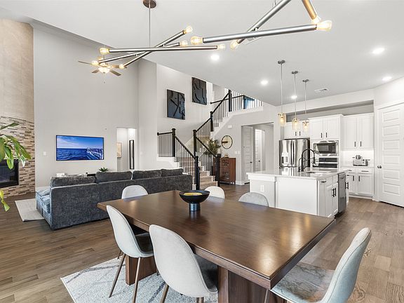 Step inside to bright, open spaces with clean sight lines, a 36” interior fireplace, and oversized sliding doors that connect indoor comfort with outdoor relaxation. The Discovery Luxury Kitchen features quartz countertops, designer tile backsplash, GE stainless steel appliances, a gas cooktop, convection wall oven, built-in microwave, and dishwasher—everything the modern entertainer needs.