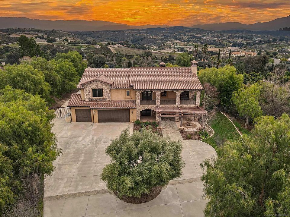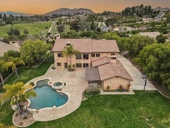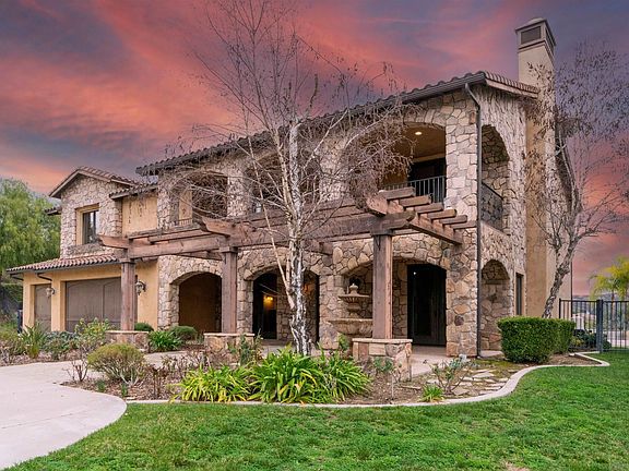 Experience luxury living in this exquisite custom-built home nestled within the prestigious gated community of Glenoaks Ranch Estates. Set upon 2.5 acres of landscaped grounds, every detail of this residence has been thoughtfully crafted to create an exceptional living experience. As you enter through the long winding driveway and step into over 4600 square feet of timeless charm, you'll be greeted by an intimate living room, a formal dining room, and a grand two-story family room adjacent to a gourmet kitchen. With five large bedrooms, including a stunning master suite with a spa-like bathroom, this home offers a perfect blend of luxury and practicality. For additional space and breathtaking views, the loft area provides an ideal retreat overlooking the surrounding hillsides of Wine Country. Enjoy the detached guest/pool house, oversized garage, and RV parking. Step outside to discover the resort-style oasis, complete with a beach entry pool & spa, cascading waterfall, and an inviting outdoor fireplace. Amidst the expanse, there are mature grapefruit trees and a variety of other lush foliage, including ample room for horses or other outdoor pursuits. Surrounded by the tranquil sounds of nature and panoramic views, this is the perfect space for hosting elegant dinner parties or relaxing with family.