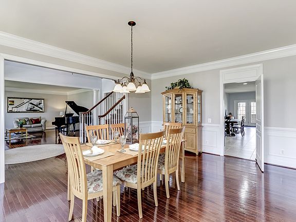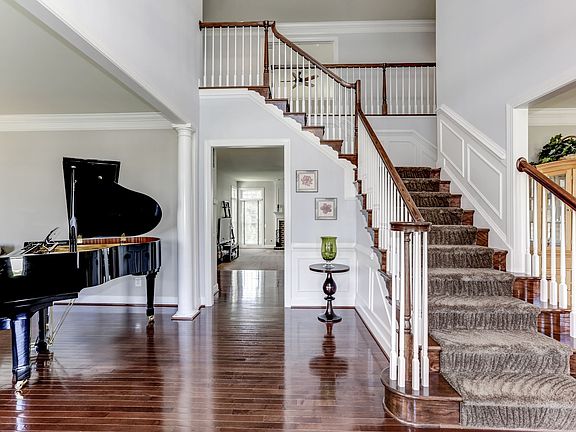 This incredible home is a Pulte Wentworth model with added extensions. Hardwoods and ceramic flooring in the middle level, dual staircases and main level mudroom with laundry. Generous pantry off gourmet kitchen with granite, stainless appliances, upgraded cabinets, custom backsplash, island, coffee station, room for bar stools. Morning room opens to incredible Trex deck with split staircase leading to fully fenced yard. Hot tub does convey. Outdoor television and ceiling fan on deck make entertaining a breeze. Dual staircases inside lead to 4 upper bedrooms, jack-and-jill bath, princess suite and large master suite features a sitting room with fireplace, grand walk-in closet, and renovated master bath with gorgeous marble and dual vanities. Walk-up basement has great finished rec room, entertaining area, full bath and bedroom, and large unfinished area.