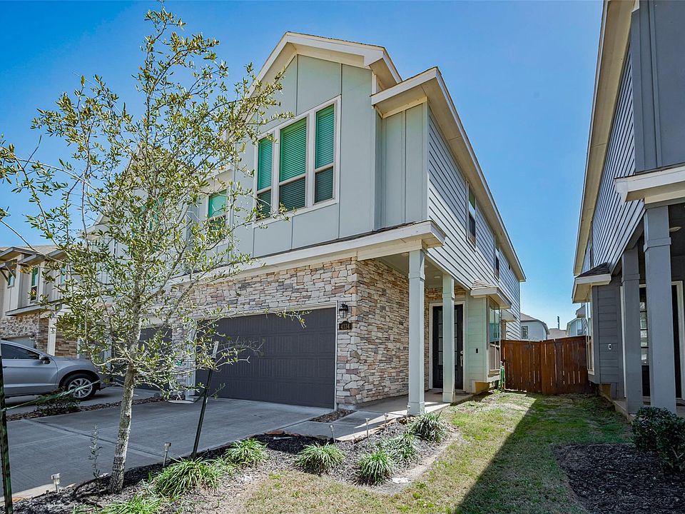 Located in the highly sought-after Hidden Trails community, this Lennar Urban Villas "Bagby II" home offers modern comfort and stylish design. Featuring 8’ doors and soaring 10’ ceilings, this two-story home welcomes you with a charming front porch and an entry foyer leading to a mudroom and powder bath. The open-concept kitchen boasts sleek stainless steel appliances, granite countertops, modern cabinetry, and under-cabinet lighting, flowing seamlessly into the family and dining areas. Upstairs, the spacious primary suite includes an en-suite bath and a generous walk-in closet, while two secondary bedrooms share a Hollywood-style bathroom. A versatile loft and game room provide additional space for relaxation or entertainment. With its prime location and contemporary finishes, this home is a must-see!