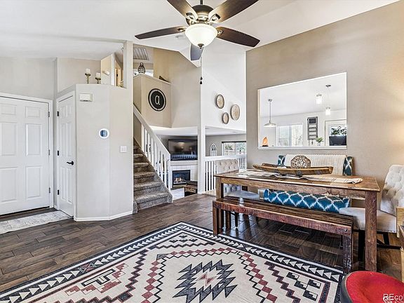 This is a beautiful and meticulously maintained home in Metzler Ranch for small town living near the big city! 3 bedrooms, 2 baths with vaulted ceilings, open floorplan is great for hosting groups of friends or family. Brand new carpet! Kitchen with freshly painted cabinets, great appliances: gas range 2020, dishwasher 2023, microwave 2023. Fridge stays (washer and dryer stay too). Primary bedroom is vaulted with ceiling fan, walk in closet. 2nd bedroom upstairs is currently an office. Lower level features cozy family room with gas fireplace, bedroom and 3/4 bath; unfinished basement to finish as you choose. Ring doorbell, smart front lock and smart thermostat. Exterior paint 2022. Huge, flat yard w/6’ privacy fence, great landscaping and beautiful curb appeal with concrete edging; large flat yard, brick patio, view The Castle Rock and Pikes Peak from the back of the yard. Close to Metzler Ranch Park w/skate park, new astroturf fields, roller hockey, and a brand new Metzler Each Open Space with trails; E-bike to downtown Castle Rock in 10 min, also near MAC park (aka Philip S Miller). Perfect location to commute to Denver or Colorado Springs, with easy access to I25! Close to everything! **Compare taxes to other neighborhoods...one more reason this one this one is extra special.**