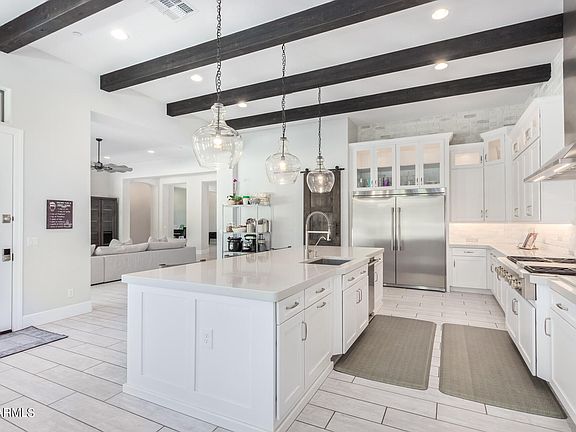 Exquisitely designed backyard boasts 2 water features, 2 fire pits, 2 misting systems and a gorgeous raised bed organic garden with automated watering. Fabulous outdoor kitchen will make entertaining a cinch. Recipient of multiple Community Curb Appeal recognitions, this home is beautifully designed and has been meticulously well-kept, inside and out. The charm, space, and privacy is untouchable in the valley.