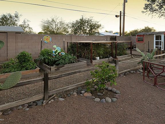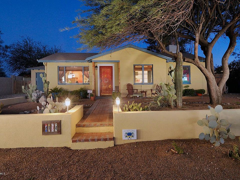 For more information on this property, contact the Listing Agent, Jan and Kandy at (520) 403-1000 or jankandy@mindspring.com. Charming, central home in the Frontier VillageNeighborhood. Easy location to UA, downtown,UMC. Fabulous backyard with vegetable gardenand a chicken coop! Landscaping is low maintenance and on a drip system. Great covered porch and flagstone deck make entertaining outside easy. Cute home with versatile floor plan! The rooms can be set up a variety of different ways to suit your lifestyle. Tile or wood laminate floors throughout! Great window coverings, decorator paint. Cheery kitchen with bright colors, tile counters & back splash, farmhouse kit sink, SS gas range & dishwasher. Laundry room w/ laundry sink. Bedrooms have good closet space. Updatedbaths. Evaporative cooling +A/C. Single car garageplus separate storage shed. Alarm System.Move in ready!!!