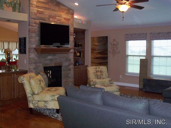 This custom built brick ranch shines inside and out. Spacious open floor plan has hardwood floors on most of the main level, custom extra tall kitchen cabinets, stainless steel appliances and an island with breakfast bar. Bright and sunny breakfast nook with view of large 1 acre lot. You're going to love the spacious rooms and vaulted ceilings along with the special built-ins, beautiful see through gas fireplace with attractive stone surround. The master suite has a tray ceiling separate his and her extra tall sinks, a large shower with seat and a huge garden tub. Both bathrooms and main floor laundry have large custom vinyl tile with grout. The 3 car oversized garage is finished with plenty of room for 3 vehicles and toys. This home is immaculate, bright and inviting.