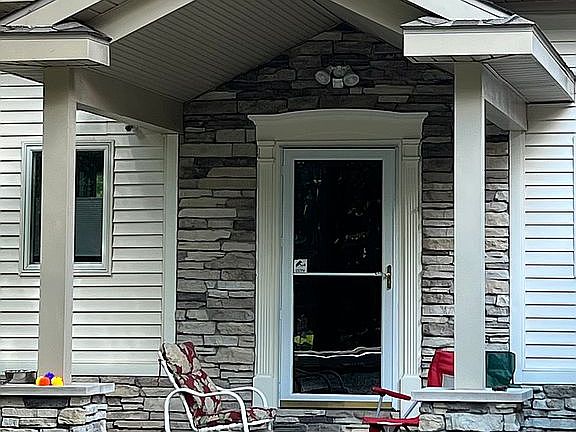 - Exterior features: Stone, Vinyl, Wood