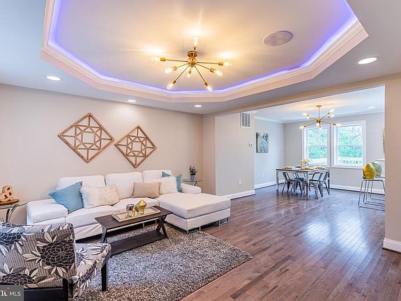 INCREDIBLE CUSTOM RENOVATION WITH DESIGNER FINISHES AND 3 FINISHED LEVELS! Features include an open floor plan w/ hardwood floors throughout the main level, spacious living room w/ tray ceiling and rope lighting, separate dining room w/ crown molding, gourmet island kitchen w/ granite counters, ss appliances, and tile backsplash, upper level w/ 3 bedrooms & 1 full bath, fully finished basement w/ a large family room, 4th bedroom, and full bath, and a rear deck overlooking the backyard! Pack your bags and move right in!