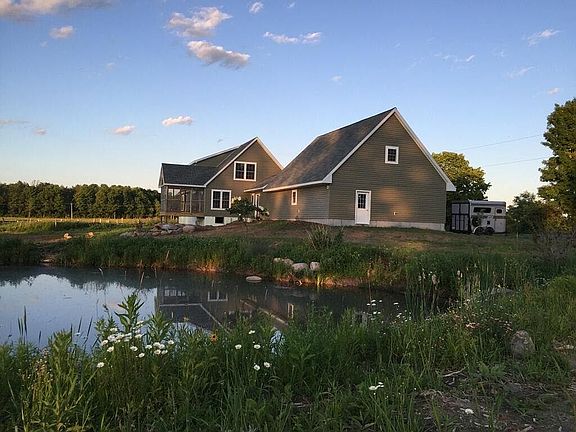 Beautiful horse farm. Indoor arena, cape cod 2447 sq ft, 5 bedroom, or 4 with in home office, main floor master with large walk in closet, walk in tile shower, open concept. Large walk in pantry directly off kitchen, 2 sinks one in island, cook top, microwave/ wall oven combo,quartz countertops, hickory cupboards. Laminate and ceramic floor throughout. Large entry/ mud room14x18 connects house and three stall garage with easy access attic / man cave 14x38, full basement 8' ceiling, walk out, heated floors. Hot water heat, cost of heating house, hot water and cooking with propane is approx $1500/ yr. Screened in porch. Large back patio area. Barn has heated area with oak kitchen cupboards, sink, viewing area, bathroom/utility room. Tack room, grain room, hay loft, wash stall area, 6 stalls, matted stall floors 4 with Nelson heated bowls, also Nelson bowl in indoor arena 60x124, unfinished area which could be run in, storage, more stalls, etc. 3 ponds. Conveniently located 30 from Otter Creek horse trails, 30 minutes from Watertown and Ft. Drum, 5 minutes from Carthage, 10 minutes from Lowville.