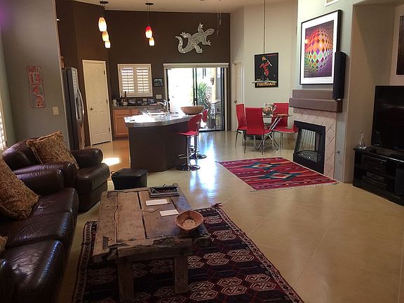 GORGEOUS MOUNTAIN VIEWS!! This Immaculate 3 Bedroom 2 Bath Retreat is Move In Ready. Large Open Great Room w/Entertaining Island. Custom Paint thru out the Home, Newly painted exterior with custom parapets on entire exterior of home, Plantation Shutters, High Ceilings, New granite throughout the home, Stainless steel appliances, New clear skylights, Recess Lighting, Top Notch Light Fixtures, Cement throughout the home, Plus has a Cozy Fireplace To Gather Around. Bathroom has been remodeled, custom glass art work at entry way. Metal work throughout the backyard for extra privacy. Then Step Out onto a Covered Patio to Enjoy the GORGEOUS Mountain Views. Close to Community Pool/Spa, Public Transportation, YWCA, Shopping, Dining, Banking and Entertainment. Negotiable with furniture and entertainment in the home.