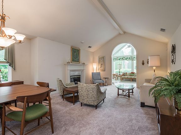 Pristine 3 Bedroom 3 bath condo with updates galore, including new carpet throughout, freshly painted, Kitchen has new stainless steel appliances, new hardware, new stainless steel sink, and faucet. This unit sits on a large corner lot, and has a large, light filled Florida room with tiled floor, and large casement windows, that most of the units do not have. Large Great room with vaulted ceiling, Carrera marble fireplace with gas logs and electric starter. Custom window treatments, and blinds throughout. Huge 1st floor master bedroom with crown molding, and fully tiled master tub. This is an exceptional unit and should not last long. Don't miss out. The private patio has a brick privacy wall and a custom designed iron railing.