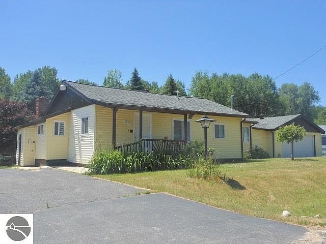 MANY UPDATES!! Nice 2 bedroom, 1.5 bath home on four lots with large back yard and front covered porch. There is an attached garage for storage that also has a workshop. Updates to this 1200 square foot home include newer plumbing, roof, siding, flooring, furnace, water heater and drywall. The kitchen has also been updated and appliances are included in selling price. There is a 11x21 family room or a place for a third bedroom for your guests. Home is not too far from lakes and state lands for year round fun! This home really has a lot to offer for the sales price!!
