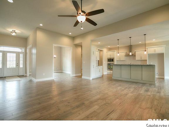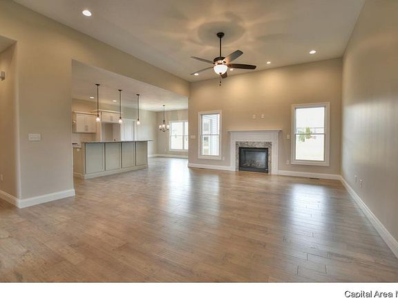 Gorgeous new construction by Tusek Builders in Olde Bradfordton Subdivision, Pleasant Plains Schools. This 3BR/2.5BA west side ranch boasts beautiful Harbor Gray scraped HW flooring, 11 ft ceilings in formal DR & LR, timeless white cabinetry w SS hood vented to exterior over gas range, WI pantry, drop zone, granite throughout, awesome laundry opening to master suite with large WI shower & free-standing tub. Fully sodded & irrigated lawn. 3.5 car garage. Covered composite deck. Brick & stone facade. Full 9 ft basement, ready to finish!