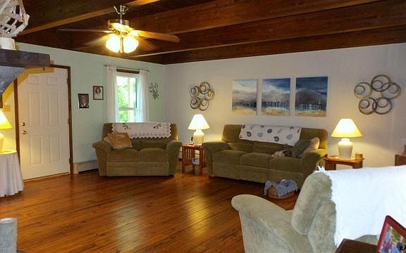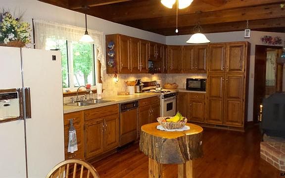 1 owner, over engineered cape cod w/beautiful stained wood flrs & exposed stained beam & wood ceilings, brick frplc in huge country Kit, Stone frplc in LR w/heatolator, 16x44 deck & covered patio, 3 car gar, over 10 acres, above pool, 2nd flr has kit & sep ent for inlaw suite! Part fin bsmt w/ri for ba, new roof, neat, clean & secluded! 1st flr MBA & MBA too!