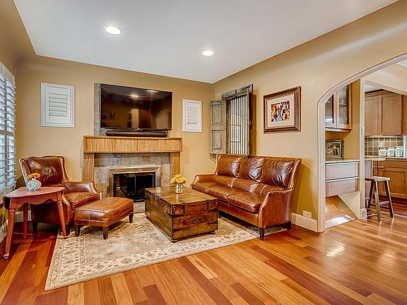 This stunning mid-century 3 bed, 2 bath home with a vaulted ceiling hobby room boasts numerous high-level upgrades; Brazilian cherry wood floors, plantation shutters, custom walnut mantle over gas fireplace, glass french doors that open to a picturesque view of the yard, stainless appliances, granite counter tops, 6"trim, central air, sprinkler system, and an oversized, finished EV ready, 2 car garage with custom cabinetry, polyaspartic epoxy floors and sliding glass doors that open to the yard. Newly equipped, 8.3 KW solar system, sized to produce up to 100+% of the electricity needed for this home (NO LEASE to acquire on this $30K upgrade) This amazing home faces east toward the Cherry Hills greenbelt and is move-in ready! Enjoy mature, professional landscaping, and a surreal backyard oasis, featuring a koi pond, waterfall and gabled, covered flagstone patio. No detail has been overlooked in this fully remodeled home with a bright, beautifully finished lower level w/7.5 ft ceilings.