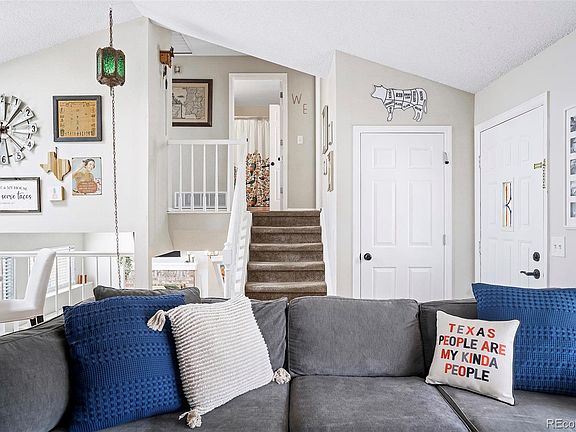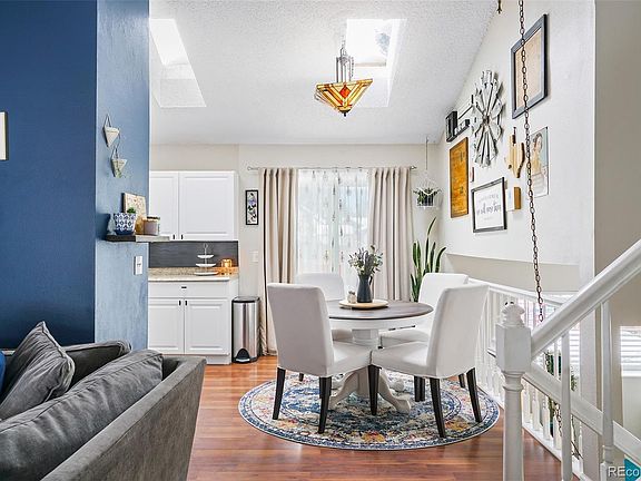 Steeped in sunlit serenity, this inviting home is beaming with thoughtful updates. Located in a quiet neighborhood within the Cherry Creek School District, a charming exterior w/ a quaint front patio welcomes residents further inside. Vaulted ceilings w/ skylights draw the eyes upward as handsome flooring flows underfoot. Filled w/ natural light from a large window, the living room opens into a bright dining area. An updated kitchen features newer stainless steel appliances and all-white cabinetry. Warmed by a wood-burning fireplace, the den offers a cozy setting for relaxation. A sizable primary bedroom boasts vaulted ceilings and ample closet space. Two secondary bedrooms include a home office w/ built-in shelving. Retreat outdoors to an expansive, fenced-in backyard featuring a freshly painted deck and a new dog run. Additional storage is found in a large crawl space and in a two-car attached garage. Upgrades include a new roof, newer A/C and furnace and a new hot water heater.
