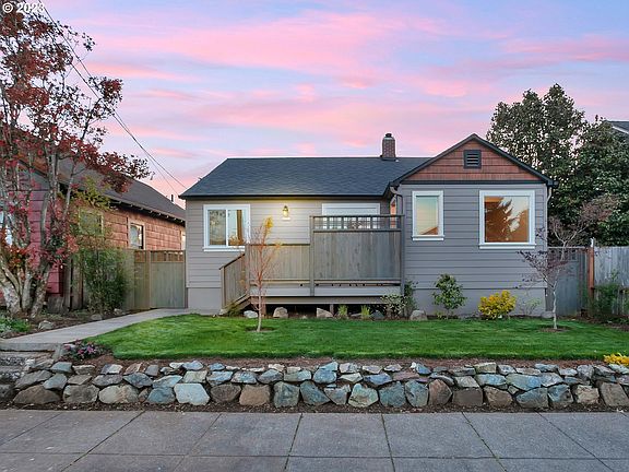 Offer deadline 12pm Monday May 8th. This charming 1906 home is located in the heart of SE Portland and is just a hop, skip, and a jump away from the lovely Kern Park! With 3 beds and 1 bath, his bungalow is move-in ready and has plenty of updates to make your life easier. Relax knowing that you have a new Malarkey Architectural roof, new gutters, and Hardi-plank siding. Inside, you'll be impressed by the remodeled kitchen and bathroom, which features quartz countertops, a tile backsplash, and high-end stainless steel appliances. The living room has stunning hardwood floors, while the kitchen and bathroom have durable LVT flooring. Get creative with the space in the oversized upstairs bedroom and large basement - offering ample living space or storage. Step outside to the fully fenced, well-landscaped backyard with newer deck, garden space, and a garage with alleyway entrance. Don't miss your chance to own this wonderfully remodeled bungalow in one of Portland's most desirable neighborhoods!