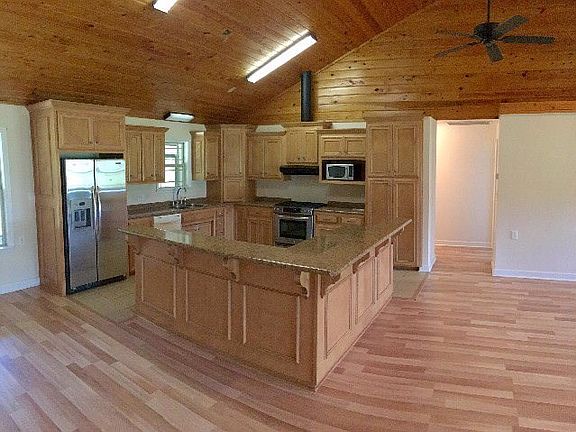 Wow! The perfect country home on five acres with no nearby neighbors and only nine miles from the Valdosta Mall! This house has 3BR/2Ba PLUS an office, a metal roof, a ton of farm fence, fenced pens for livestock, and a HUGE 36x21 wired workshop with a bay door and work benches. Inside, the floor plan is completely open with tall wood planked ceilings, a big L shaped island that couples as an eat-in bar, and tons of custom cabinets in the kitchen! There is wood-style laminate floors throughout and tile floors in the wet areas. There is a split floor plan, and the master room has two big closets, a double vanity, separate garden tub, and big tile shower. Out back, there is a huge screen porch, a separate heated and cooled office, and a big carport. There are tons of gorgeous oak trees and a gun range set up out by the shop! Take a look at the pictures, and call for an appointment today!