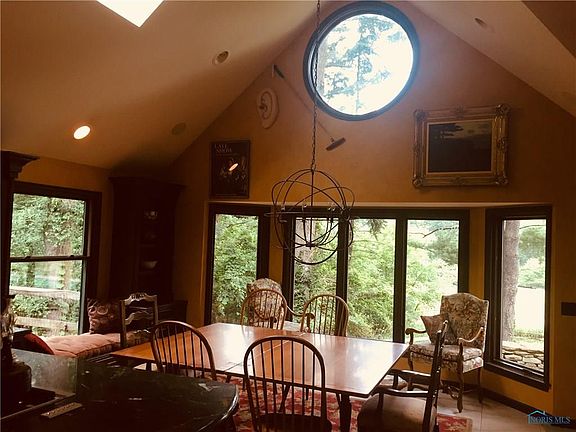 Private 5 acres close in Sylvania Twp. Gourmet Kit w/high end appliances, granite counters, eat-in by 1 of 5 fireplaces. Master Ste w/sauna, shower, soaking tub. Spacious upper bedrooms & baths newly renovated. Large deck area overlooking pool w/bath house. Guest House (962 SF) w/appliances. Truly a spectacular piece of property, mature trees overlooking Ottawa River.