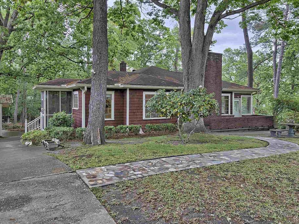 This charming cottage sits on a hill and a large corner lot with huge trees and a circular drive. Enjoy the views from the wonderful sun room or many of the other large windows throughout. Hardwood floors, an updated kitchen and an open concept from living room with fireplace to dining room. The master bath has been updated, as well as the convenient laundry room. There is a one-car attached garage in the basement along with a workshop and storage room. The detached garage can accommodate an RV and also has an attached storage room. The beautiful yard has a perfect garden spot in back! This lovely setting is hard to beat!