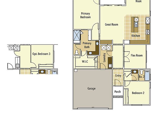 55+ Gated Community with luxurious Club House! 1,765 sqft of open living space with 2-3 bedrooms, dining room, great room, 2 baths & 2 car-garage. Large Gourmet kitchen with plenty of cabinets space, walk in pantry and large island with sink and dishwasher. Generous sized primary room suite and bath with a walk-in closet, a secondary bedroom, bathroom and a laundry room. Included CrestWood Communities features are seen throughout, 9 foot ceilings, quartz counter-tops with 6 inch backsplash at kitchen, Samsung® appliances, tankless water heater, and much more. Please see sales associate for HOA information. Elevation on home may be different than pictured.
