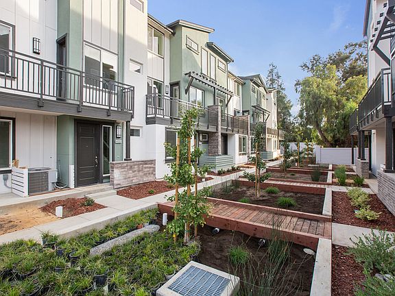 Move-in ready homes are available to tour! This community of 36 townhomes offers buyers the opportunity to live an eco-conscious lifestyle, with all-electric homes equipped with solar panels and EV-capable garages. The home exteriors boast contemporary designs, blending brick, stucco, and horizontal and vertical siding for a sleek, modern look. Families are assigned to highly rated public schools in the Fremont Unified School District as follows: Hirsch Elementary, Horner Middle, and Irvington High. Schools may be subject to enrollment restrictions, please check with the FUSD office to confirm assignment. Home features include an open, airy floorplan great for entertaining. All-electric home equipped with solar photovoltaic system. Private deck for outdoor relaxation. Shaker style cabinets with frameless construction, adjustable upper shelves, and brushed nickel hardware. LG stainless steel kitchen appliances. Kohler designer faucets and fixtures throughout. Primary bedroom suite features dual sink vanity paired with stone counters. Ground floor bedroom. Dedicated laundry room with built-in cabinetry. Impressive luxury vinyl plank flooring that looks and feels like wood and is more durable and maintenance free. Multi-zoned heating and cooling system. 240 volt Level 2 fast electric vehicle charger capable. Two car side-by-side private garage with quiet Liftmaster opener with built-in smartphone functionality.