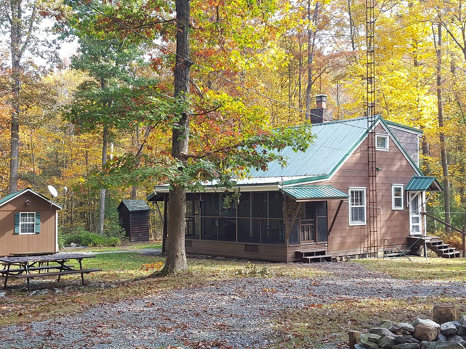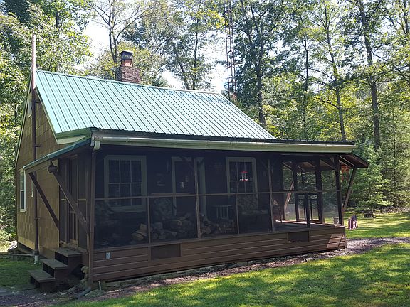 PA State Forest Lease Camp 4136 Aughwick Road (1 miles south of Cowans Gap State Park). This Cabin is one of a kind. Super cozy and in a tranquil setting. Being situated on the Buchanan State Forest, you will have an endless backyard and is complemented by the stocked trout stream of the Little Aughwick Creek, that flows beautifully behind the cabin. Deer, turkey, squirrels, song birds, and hummingbirds are just some of the wildlife regularly seen. This cabin offers a large screened in porch, cathredal ceiling, main room which showcases the napoleon wood stove insert w/ stainless chimney liner and upper balcony that services the 3 bedrooms. Bathroom and Full Kitchen. Newer metal roof, wood stove, chimney liner, shed, outdoor fire pit, etc. This cabin is laid out perfectly to entertain guests and to make your family memories. Home away from home.