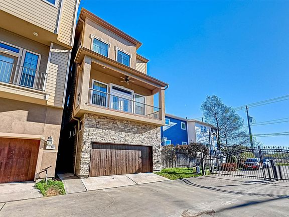 Beautiful 3 BR corner home at Villas at Bonner. Formerly the model home in a secluded gated community of custom garden homes. Centrally located for quick access to downtown, theater and museum districts and Galleria. Gorgeous details, fresh paint throughout, including plantation shutters, Brazilian cherry hardwood and tile throughout first and second floors, and deluxe wrought iron railing along the graceful stairway. Stainless appliances and granite counters adorn the open gourmet kitchen. Two balconies, one with city views, and one overlooking the hike and bike trail on the White Oak Bayou Greenway. Master suite is on the 3rd floor with new carpet, featuring a whirlpool tub and separate shower, huge walk-in closet, and spacious bedroom. This home is a must see! No previous flooding.