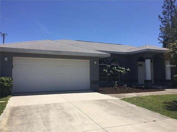 Life in paradise awaits! This beautiful 3 BR, 2 BA pool home in desirable Gulf Cove is situated on an oversized corner lot, comprised of 2 lots. You will enjoy privacy on almost 1/2 acre, yet be in close proximity to shopping, restaurants, golf courses and area beaches. The open split floorpan offers vaulted ceilings, ceiling fans, and plenty of room to enjoy with your friends and family. Your Master Bedroom suite features 2 walk-in closets, double-sinks in the Master bath and a walk-in Roman shower. Both guest bedrooms have walk-in closets as well! You will love your view of the pool and lanai from your family room. Open the sliding glass doors and let the Florida breeze in! Enjoy your morning coffee sitting at the breakfast bar overlooking the kitchen or read the paper in your separate breakfast nook. Your kitchen also offers a large walk-in pantry with plenty of shelving space. Just behind the kitchen is your inside laundry room (both washer & dryer will convey!) with a deep laundry sink. The gorgeous pool is surrounded by plenty of lanai space, perfect for Happy Hour! The exterior of your new home is freshly painted and the interior palette is neutral, ready for your personal touches. You have city water inside your home, but the outside irrigation is serviced by 2 wells, helping you save money on those water bills. Port Charlotte is in proximity of 2 international airports within 70 miles for easy seasonal travel. This is an incredible opportunity to own a FL pool home at a great value!