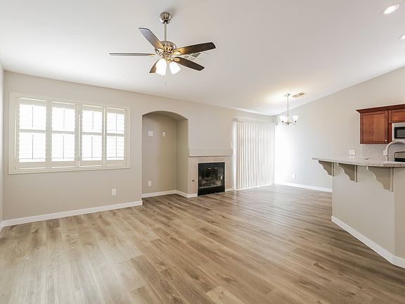 Please note, our homes are available on a first-come, first-serve basis and are not reserved until the lease is signed by all applicants and security deposits are collected. This home features Progress Smart Home - Progress Residential's smart home app, which allows you to control the home securely from any of your devices. Want to tour on your own? Click the "Self Tour" button on this home's RentProgress. This inviting North Las Vegas rental home comes with three bedrooms, two bathrooms, and 1,170 square feet of comfortable living space. The home's open-plan living room will impress you right away with its stylish vinyl plank flooring and modern ceiling fan. A recessed fireplace adds style. The kitchen includes ample cabinet space and is adjacent to a convenient laundry room. Additional highlights of the kitchen include attractive glass-door cabinetry and a serving bar that connects into the dining area. Open up the sliding glass doors to access the impressive wraparound back patio. You'll have charming plantation shutters on the windows in the home's primary bedroom, which also boasts a vaulted ceiling and a private bathroom. Tour this beautiful one-story North Las Vegas home today!