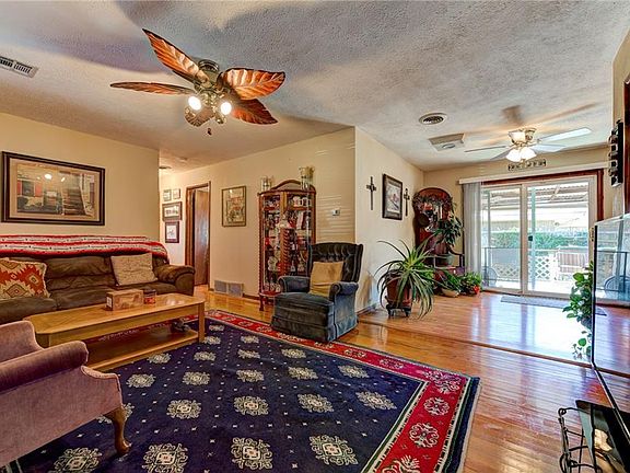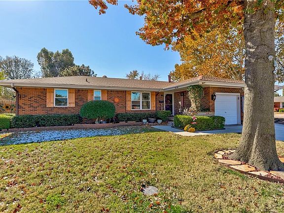 This lovely brick home sits on a corner lot complete with gorgeous trees and mature, manicured landscaping. Stained wood shutters add a touch of warmth and freshness to this 1956 charmer. Stepping inside you will be greeted with lovely wood floors, natural light pouring in through the patio doors, and a floor plan that makes the most of the square footage of the home. The neutral color scheme of the living areas gives way to a pop of vibrant color in the kitchen. Painted white cabinetry keeps it classic and fresh. Three bedrooms with wood floors and ceiling fans are just waiting for your personal stamp. The bathroom has been updated with classic stone tile and mosaic accents. It offers great space to get ready in the morning and to retreat for a refreshing soak. Your tour wouldn't be complete, however, without a visit to the cozy covered patio. It is the perfect spot for entertaining guests and relaxing at the end of a long day. Schedule your tour today, this one won't last long!