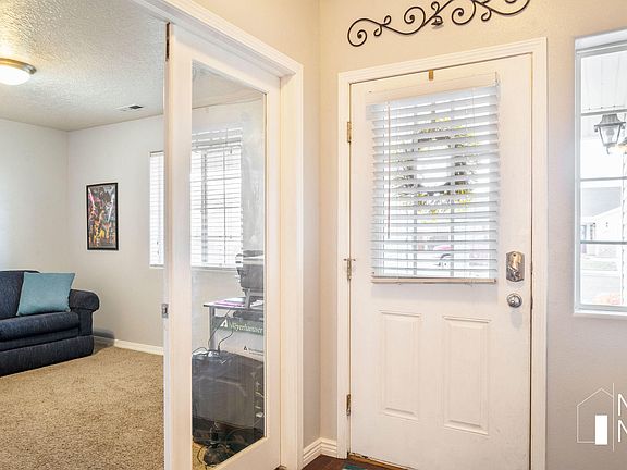 This beautiful 3 bedroom, 2 bathroom home has an inviting entry into a spacious open living area with fireplace. Office entry has french doors. Home has newer interior paint & laminate flooring. Kitchen has corian counter tops & newer black slate appliances including a double oven. Within walking distance to school. Built in shelving in garage included.