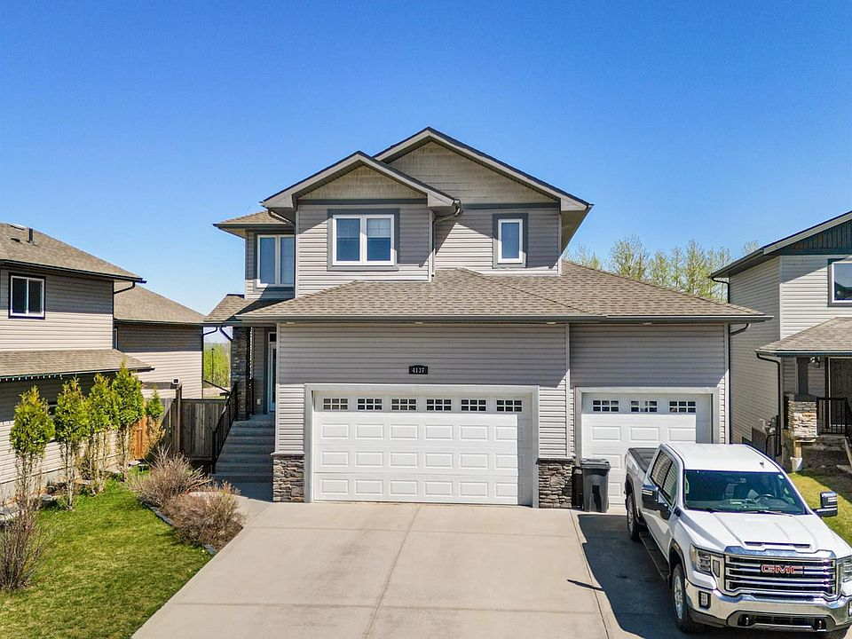 Located in the subdivision of Meraw Estates in Drayton Valley, this 2014 built, 2-storey home overlooks a pond, and is surrounded by walking paths in a quiet neighborhood. Having 4 bedrooms, 3.5 bathrooms, and tons of living space with over 3,000 sq ft, this is a perfect family home that allows for both personal space and family time. Unique features of the home include a walk-out basement, huge rear deck, triple garage, natural gas hookup, A/C, hot water on demand family/living rooms upstairs, on the main floor and in the basement. The kitchen is well appointed with granite countertops, stainless appliances + bar fridge, an oversized island, loads of cupboard and counterspace as well as a large walk-through pantry. Upstairs has a bonus room, the large primary bedroom, 5-pc ensuite & large walk-through closet that opens to a laundry room, and two additional bedrooms, each with walk-in closets. The walk-out basement is fully finished with a fourth bedroom, a 4-pc bath, in floor heat, and a wet-bar!