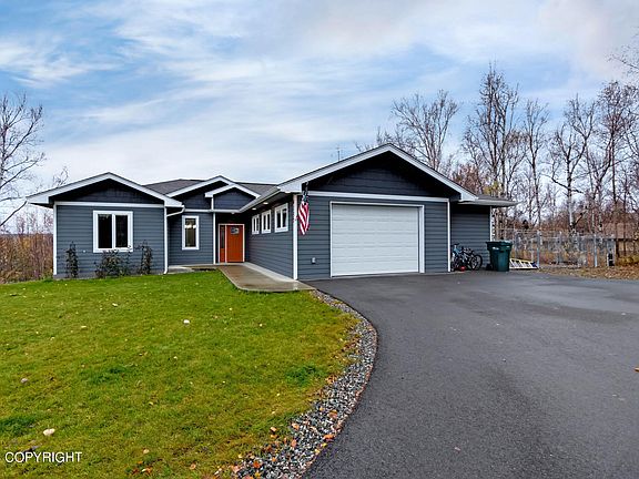 Virtual Tour Available!Exquisite 3-Bed, 3-Bath quality built home w/ bonus basement Studio Suite, can be used as a rental or just extra family space. Plus two attached oversized garages for a total of 1400+ sq ft of garage space. Nestled in a highly sought-after central location this home offers convenience for daily commuting or private in town living...Key Features: Quality Construction: This home is a testament to quality and craftsmanship. From the moment you step through the front door, you'll notice this is not a basic home. High ceilings, beautiful paint colors, large windows to let in the light and views of the mountains, quality trim, solid surface window sills, solid surface counter tops, high end cabinetry, LVP flooring, epoxy sealed garage floor, and more! The bonus Studio Suite in the basement is a hidden gem. It has it's own garage, driveway and parking making it perfect for generating rental income. It can also be used as an extra family room or guest area. It's a versatile space that can be tailored to your specific needs. Either floor can be used as Single-Story Living with easy access. Extra Garage Space: The garage on the main floor has been built to be a three car garage. A larger garage door and extra garage door can be added to make it more functional for parking multiple vehicles or it can be used as is for a single car garage with room for hobbies, shop space or toy storage. The garage below is an oversized 2 car garage with extra high ceilings. Paved Parking: The paved parking area is both aesthetically pleasing and functional, providing ample space for multiple vehicles including an RV and ensuring a tidy, well-organized exterior. Beautiful Mountain Views: Wake up to views of the Hatcher Pass mountains, creating a serene and peaceful backdrop for your daily life. Enjoy the oversized 1.5+ acre lot that offers plenty of mature trees and privacy. Landscaped yard, flower beds with mature rose bushes, fenced in area with accessibility from the garage for pets. Large Trex deck with views of the mountains and room to relax year round.