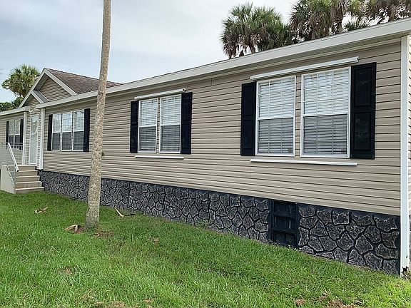 This 2005 3 bedroom 2 bath home is located in the quiet community of Cedar Lakes West. It is conveniently situated off SR 520 and I-95 in Cocoa with easy access to Cocoa Village and Cocoa Beach. Orlando Airport is only 30 minutes away. The spacious kitchen boasts an island, warm natural oak cabinets and pantry with upgraded adjustable shelving. The incredible focal point of the kitchen is all newer deluxe black stainless appliances and lots of natural sunlight from 6 large windows, which provide cool tropical breezes during the fall, winter, and spring months. In addition to the eat-in dining area there is room for eating at the counter height bar as well. The over-sized laundry room/mudroom, with upgraded beautiful rich dark cabinets, has lots of storage options. The newer washer and dryer will stay. There is even space for a chest or upright freezer. The deep utility sink has a new pull-down faucet sprayer. The split plan layout provides privacy for the master bedroom. An en suite bathroom has a newly tiled shower and grab bars. The double sink vanity also has an area for getting ready in the morning. A HUGE 9x10 walk-in closet is just off the master bathroom. The two guest bedrooms are at the rear of the home. They are both nice sized and each has a walk in closet. The second full bathroom is just steps away from both bedrooms. Other features include crown molding, upgraded baseboards, 2" vinyl blinds, ceiling fans, and new vinyl plank flooring throughout the entire house. The A/C was new in 2019. New asphalt roof was done in 2017. All rooms have been newly painted. This is one of the few homes in Cedar Lakes with a garage and carport. The 14x25 1-car garage is extra deep and over-sized making it ideal for a workshop or extra storage. The 14x29 carport is wide enough for patio furniture in addition to parking. Hurricane shutters have been installed on the kitchen windows and there are enough shutters to complete the installation on the remaining windows. Community features include a year round heated pool, clubhouse, RV storage, and recreational activities. Low HOA fees of $229 cover lawn service, pest control, cable TV and internet. This home includes the land share and is considered real estate. Therefore, buyer will NOT have to pay state sales tax nor monthly rent. The electric and water bills run $100-$200 per month (total). Property taxes have been $452 per year. The low monthly bills make this an inexpensive place to live. HOA requires buyer to follow application process which includes credit and background checks.