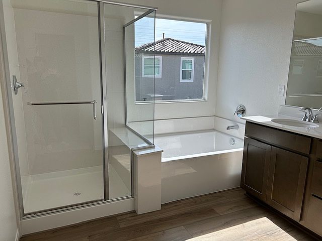 Modern layout Beautiful Brand New House inside Gated community. This is perfect home for your new life! You have options for a Master bedroom with a large walk-in closet and a separate Tub and Shower at the primary bath, Or other three bedrooms. Highlights: the downstairs bedroom with full bathroom belongs to you! Enjoy modern comforts including stainless steel appliances and High-speed WI-FI covering the whole house. Additionally the formal dining room, laundry room, fixtures, and ceiling fans. and a private low-maintenance backyard. Ready for immediate move-in.