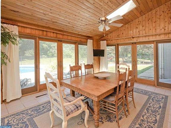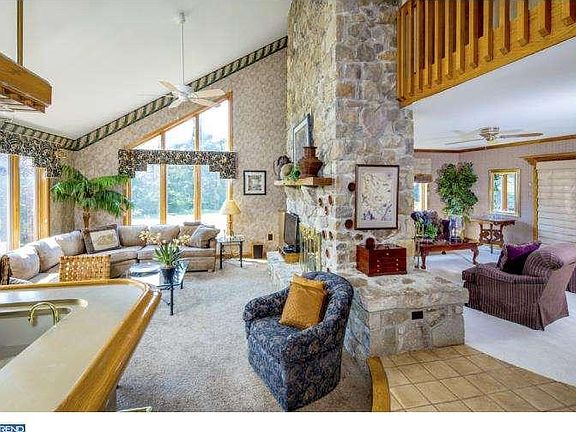 2-Story,Detached, Contemporary - ALLENTOWN, PA At the end of a cul de sac, a circle of pines surrounds 2.7 acres providing privacy and peace for this extraordinary contemporary home with soaring roof lines. An intriguing floor plan creates light washed spaces filled with warm wood accents over multiple levels. The great room, with a two-sided natural stone fireplace, has everything to make entertaining fabulous while the living room is a windowed retreat. Hand-painted tiles add texture to a curved kitchen with great style and workspace. Light pouring into the sunroom turns tongue and groove cedar a shade of honey while multiple windows frame big sky views. The glamorous master bedroom adjoins a bath and genuine dressing room with a dramatic closet that includes washer and dryer. A Jack and Jill bedroom suite is a creative and pragmatic use of space while the loft is large, bright and multipurpose. There is a first floor bedroom and full bath, and a finished lower level with exercise, hobby and rec rooms adding great family flexibility. Outside, majestic pines frame a big sky view and the grassy area rolls around the house to the stone turret and entrance. During sun-filled days or under starry nights, Peaceful Skies is an imaginative home that makes life a lot more interesting.